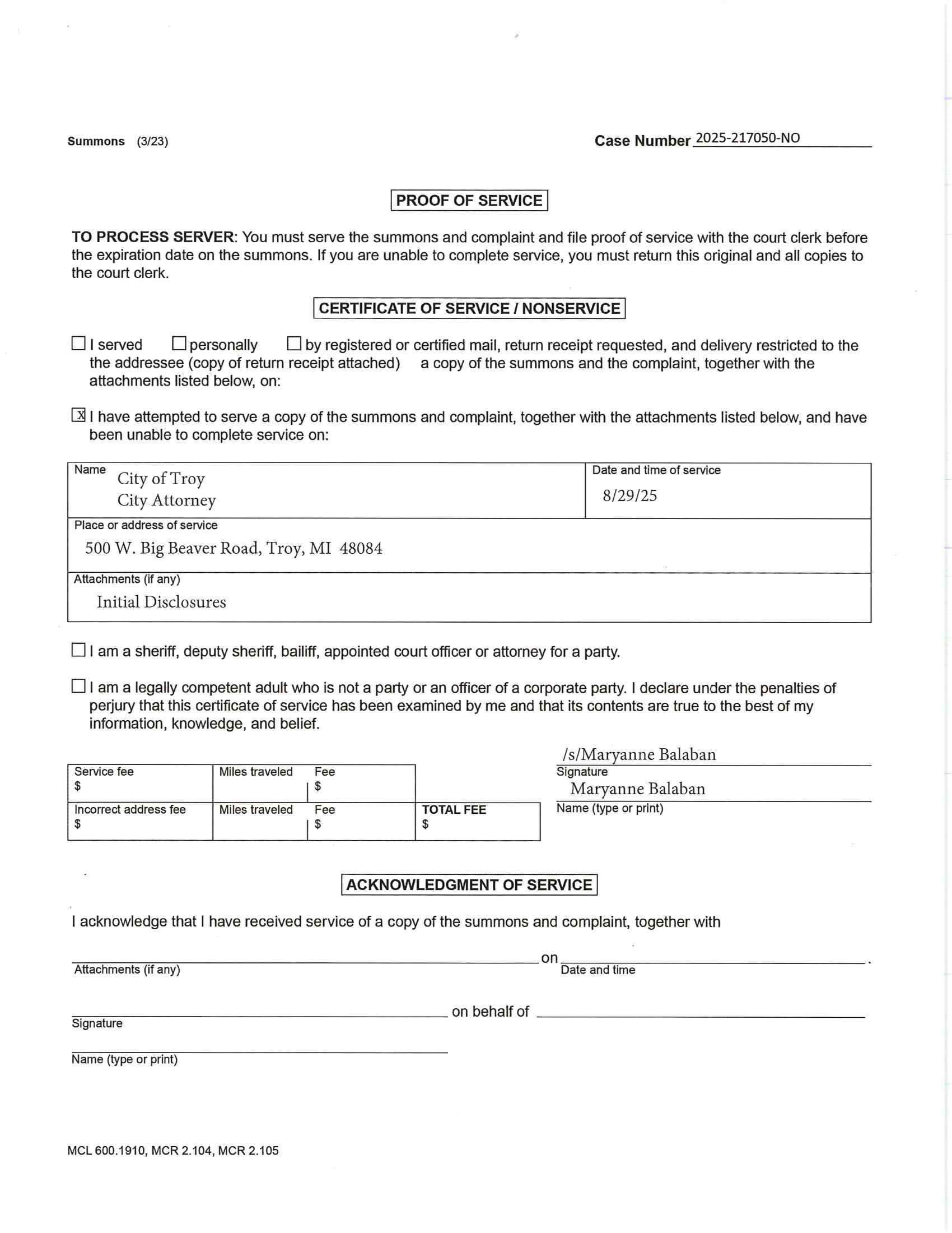 2025-09-29 City Council Regular Agenda Item J-11 Naqiya Salman V. City Of Troy