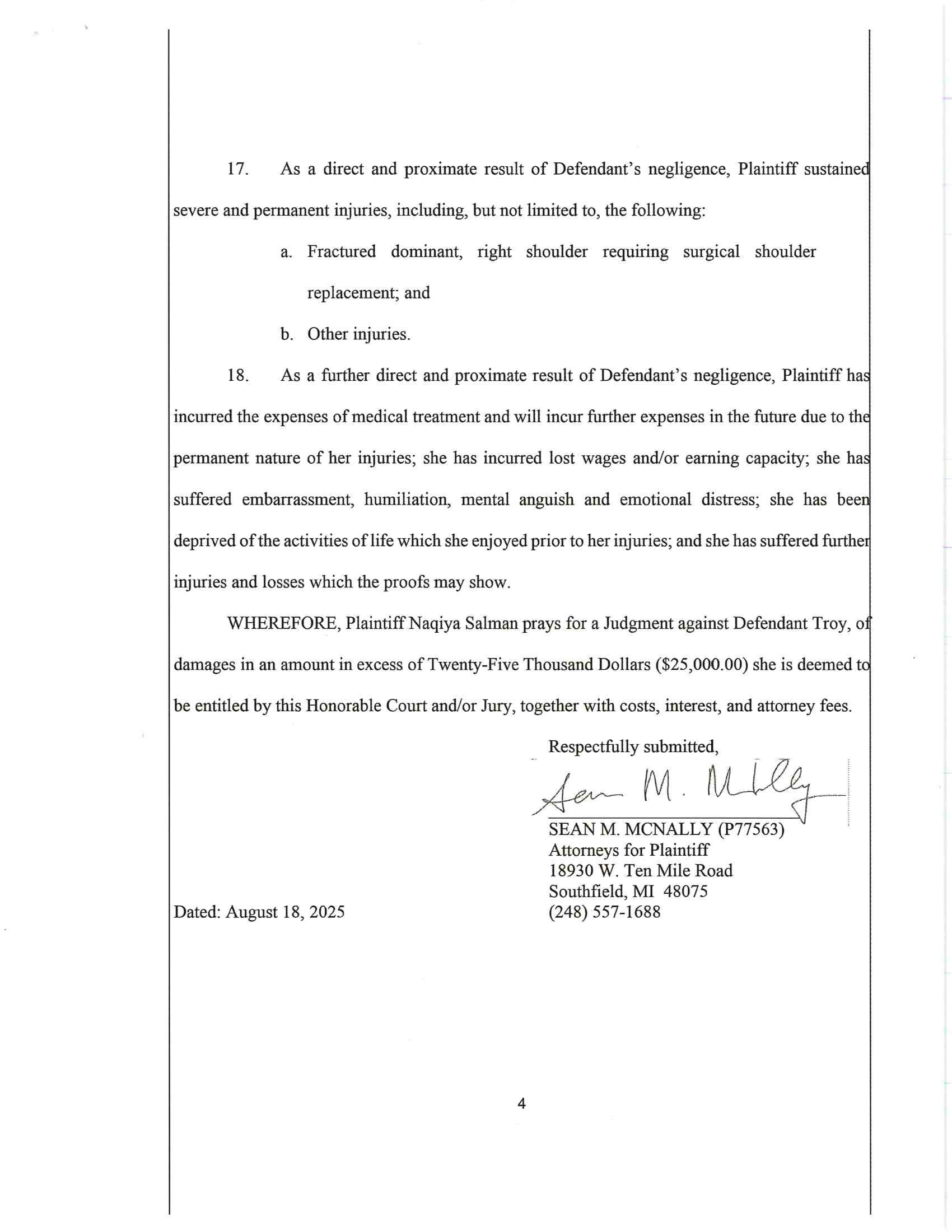 2025-09-29 City Council Regular Agenda Item J-11 Naqiya Salman V. City Of Troy