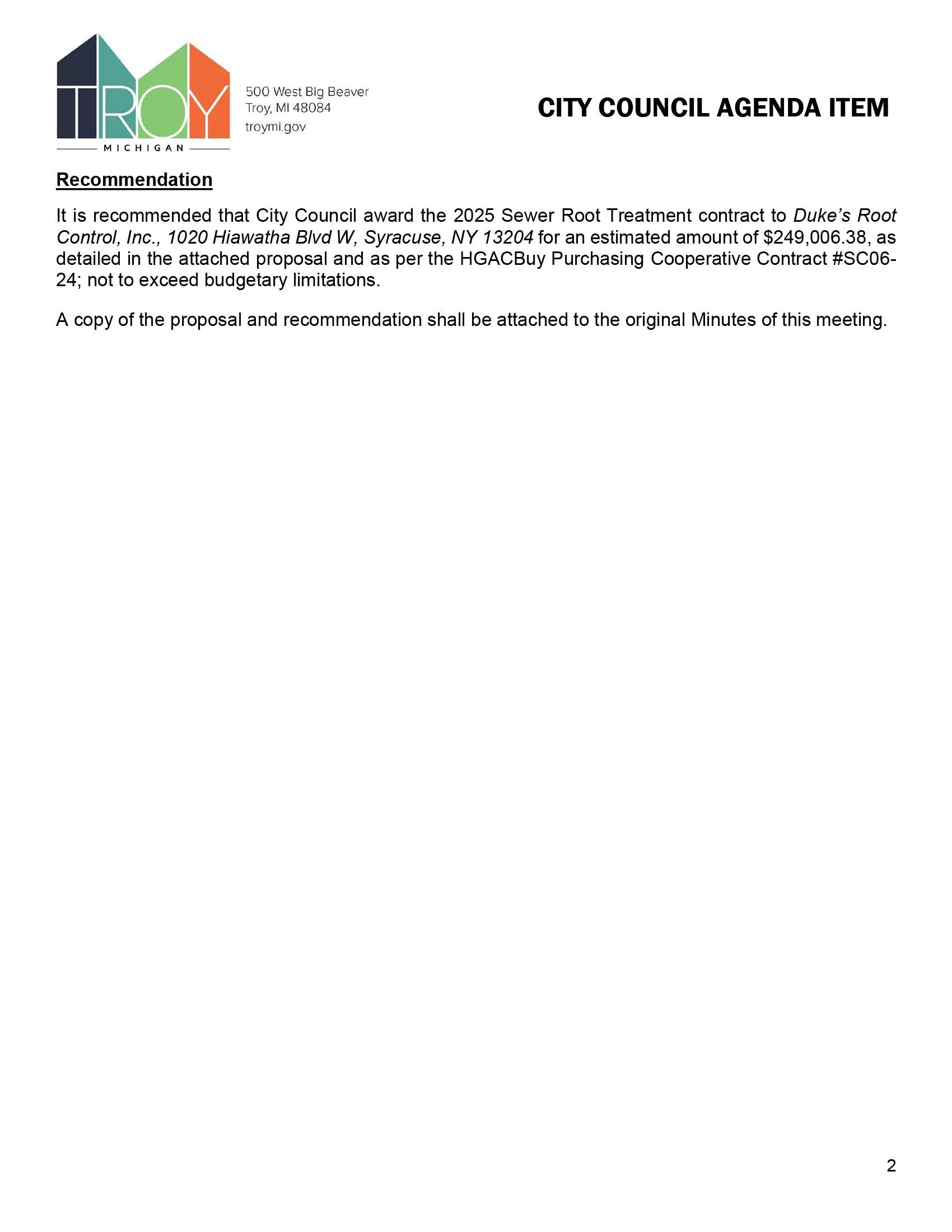 2025-09-29 City Council Regular Agenda Item J-04C Spr4 – Hgacbuy Purchasing Cooperative – Contract No. 25-02 – 2025 Sewer Root Treatment