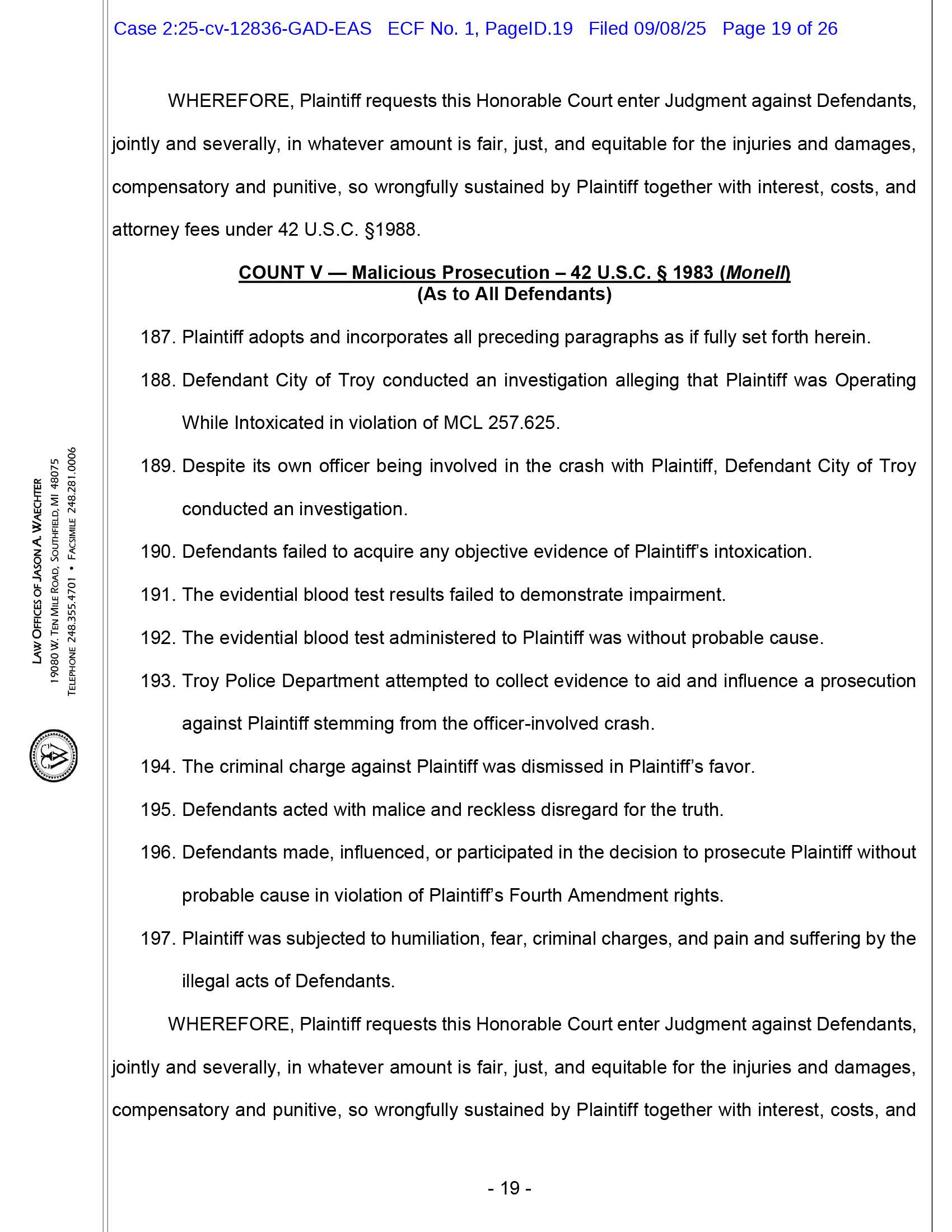 2025-09-29 City Council Regular Agenda Item J-12 Thomas Szczesny V. City Of Troy Et. Al