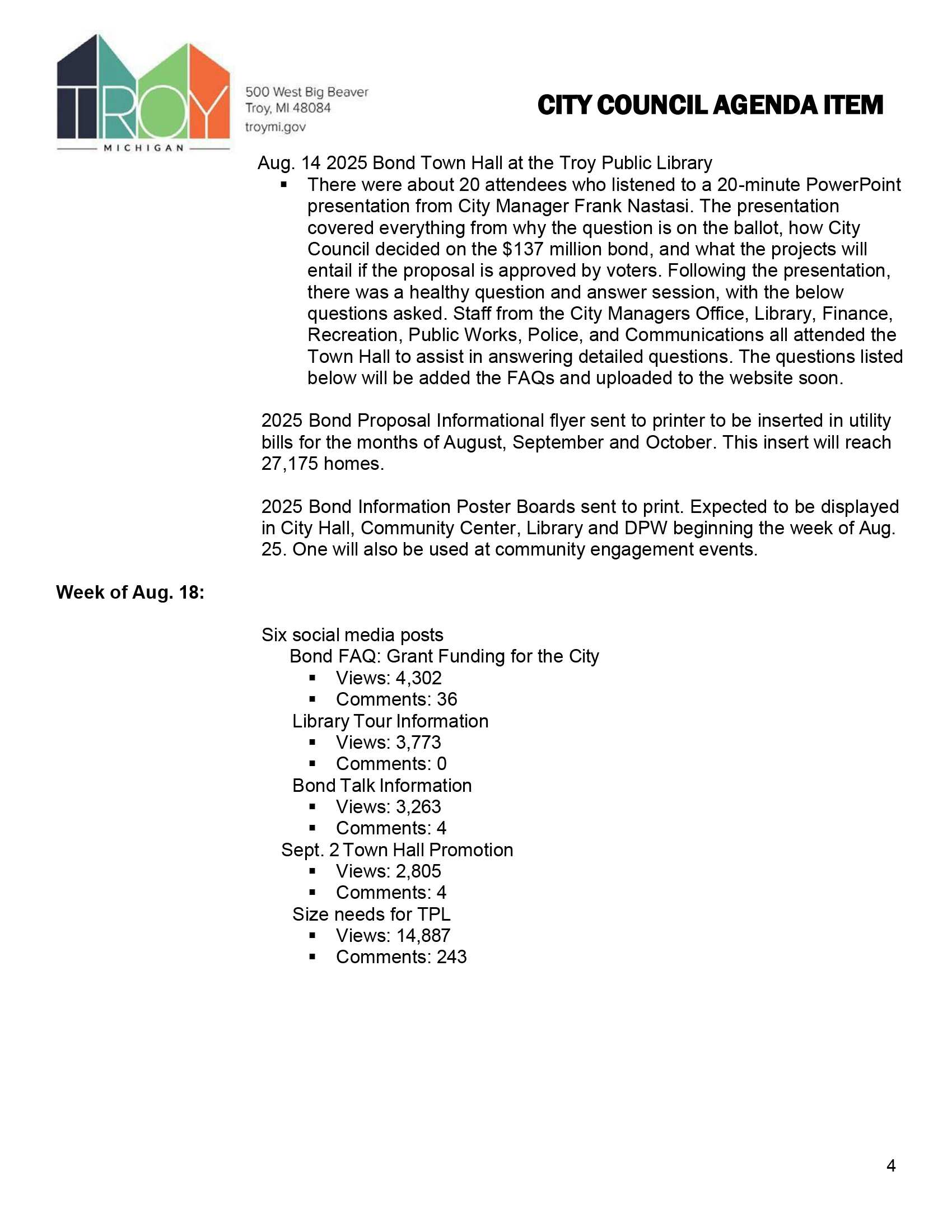 2025-09-29 City Council Regular Agenda Item O-02A 2025 Bond Proposal Communications Plan Updates