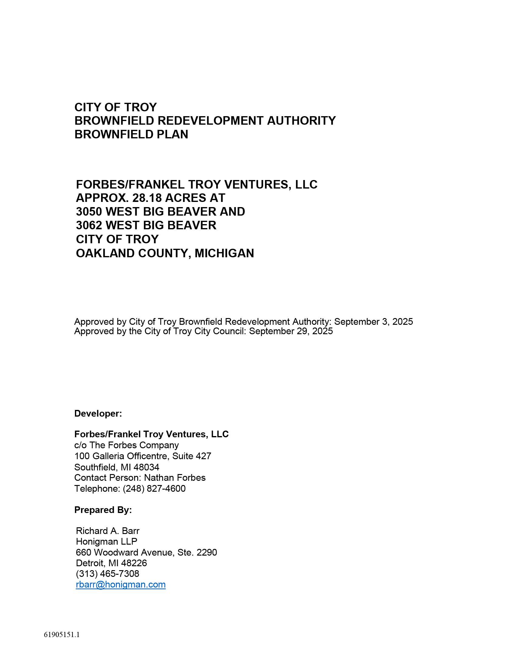 2025-09-29 City Council Regular Agenda Item E-01 Termination Of Brownfield Redevelopment Plan #5 (Pavilions Of Troy) And Approval Of Brownfield Redevelopment Plan #12