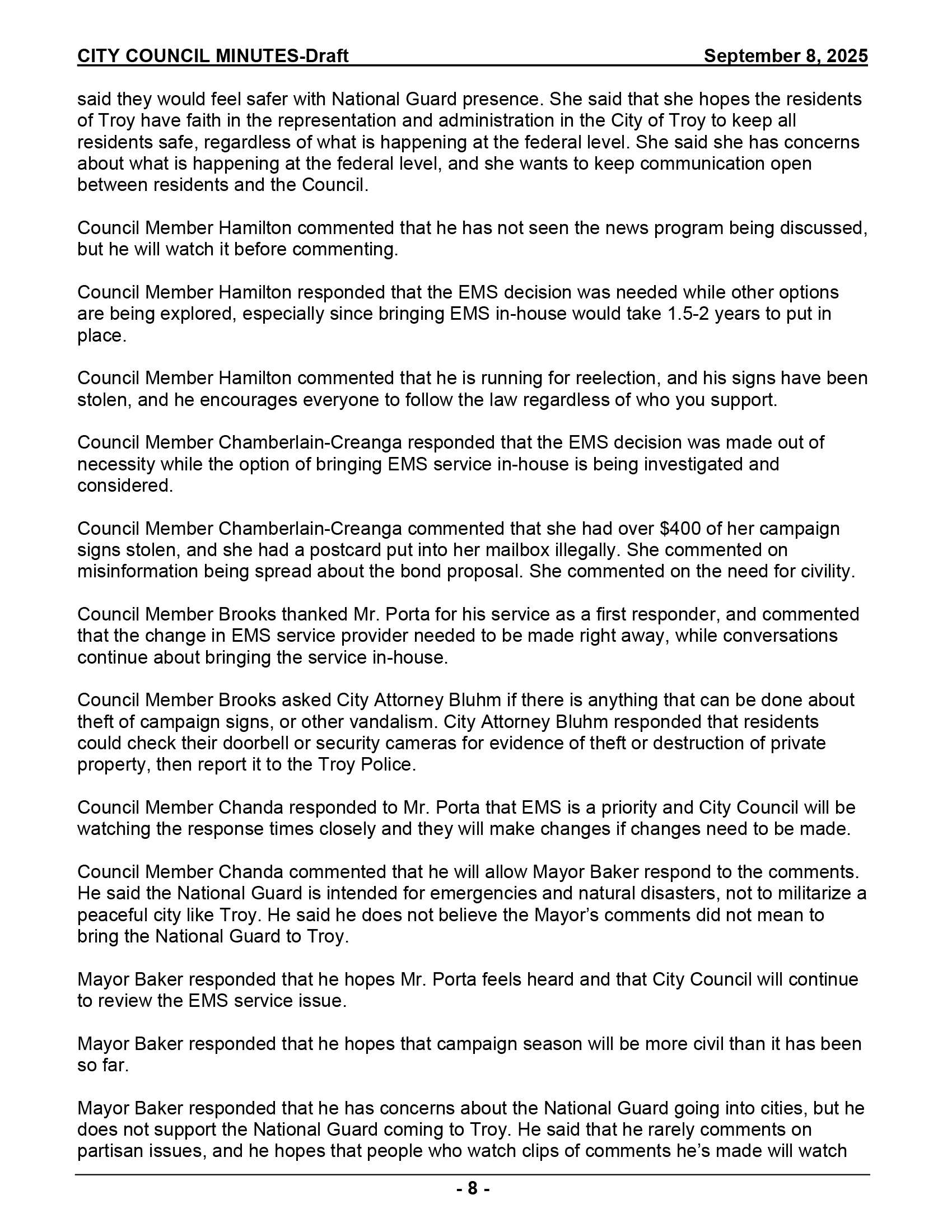 2025-09-29 City Council Regular Agenda Item J-02A City Council Minutes-Draft - September 8, 2025