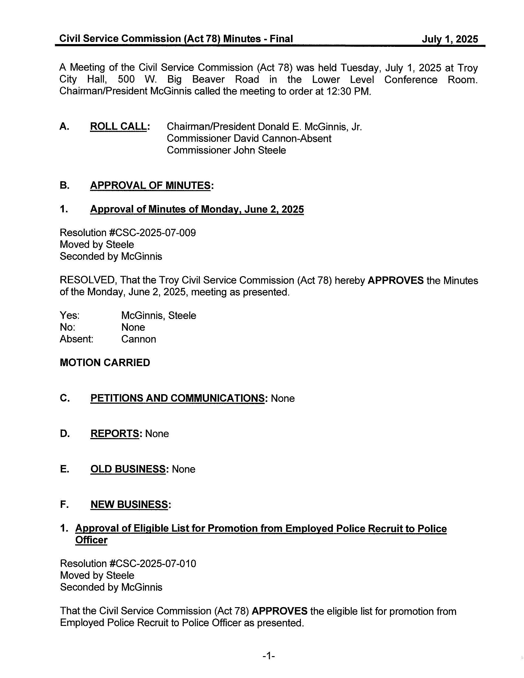 2025-07-01 Civil Service Commission (Act 78) Regular