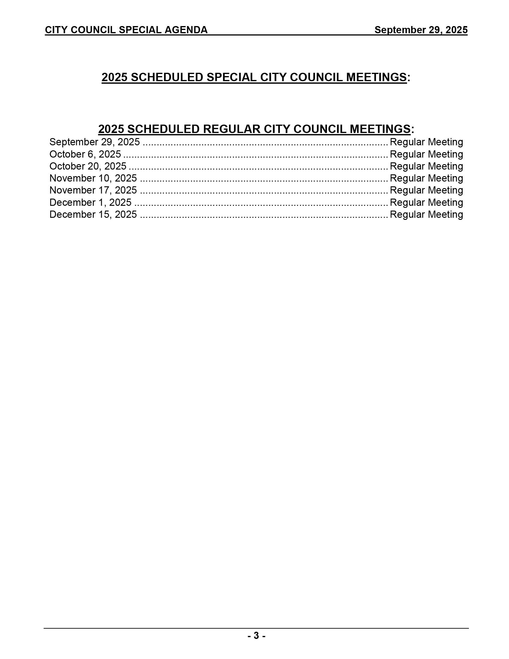 2025-09-29 City Council Special Agenda