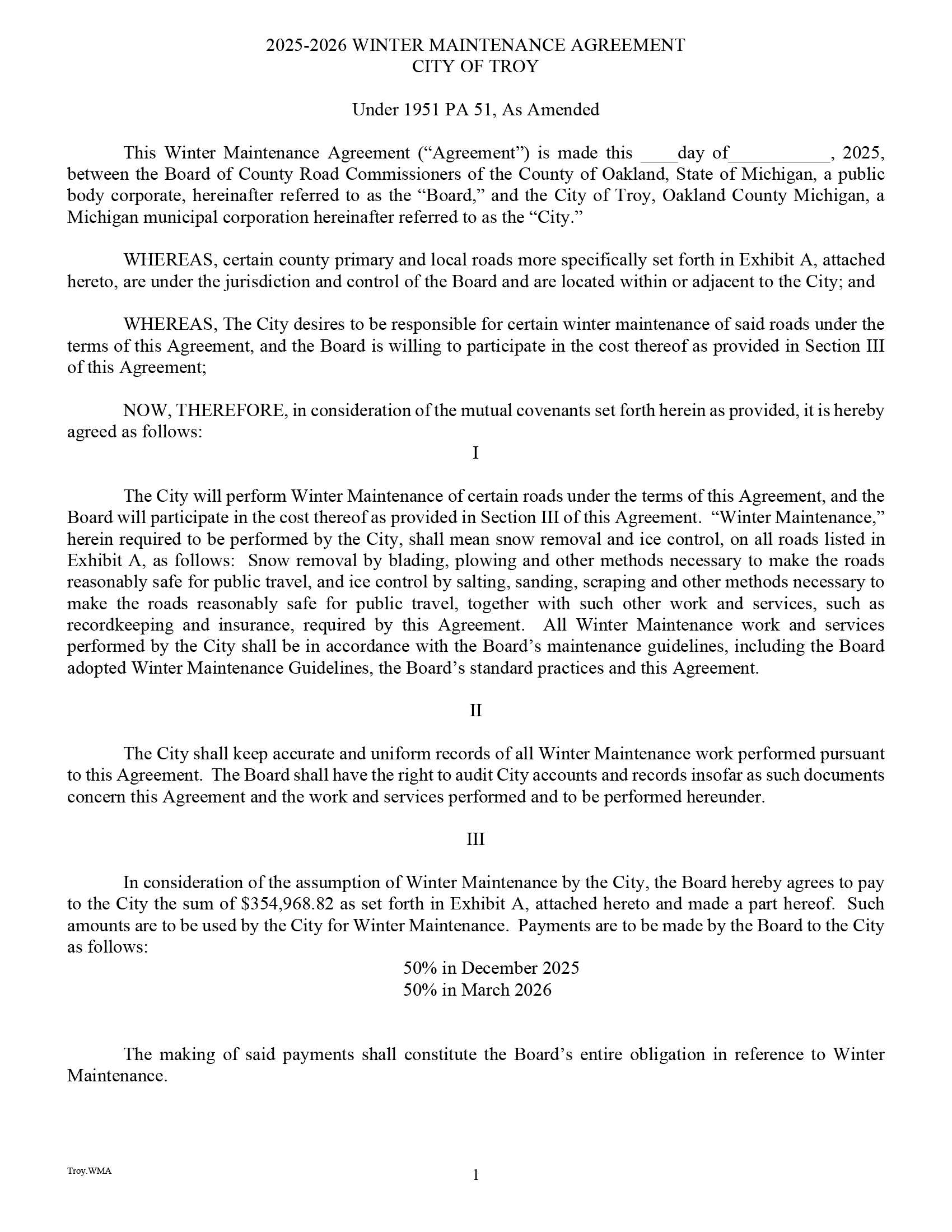 2025-10-06 City Council Regular Agenda Item J-05 2025-2026 Winter Maintenance Agreement, Road Commission For Oakland County