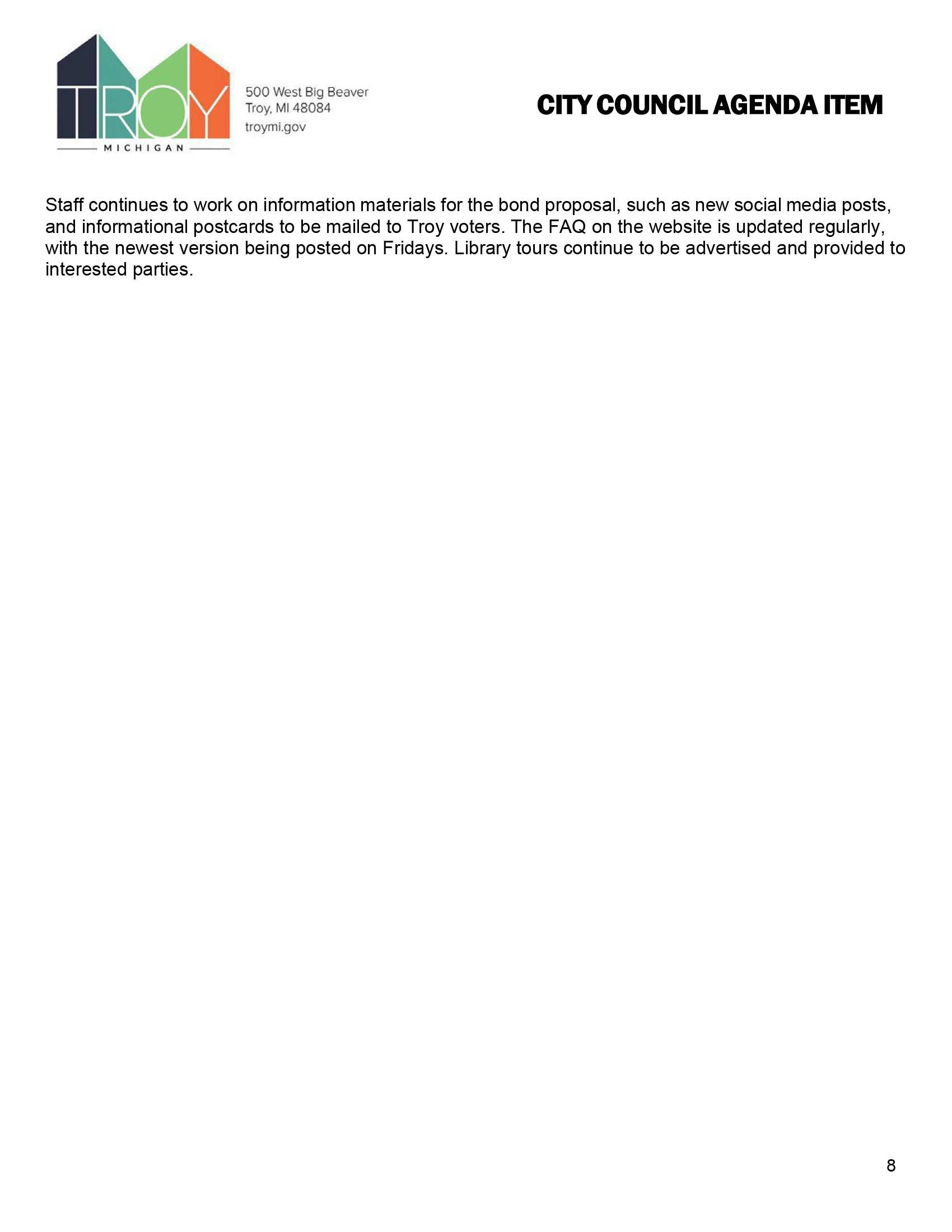 2025-10-06 City Council Regular Agenda Item O-02A 2025 Bond Proposal Communications Plan Updates