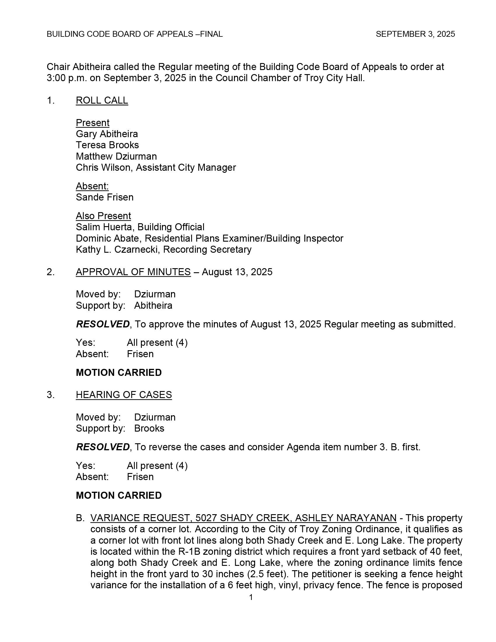 2025-10-06 City Council Regular Agenda Item O-01A Building Code Board Of Appeals-Final - September 3, 2025