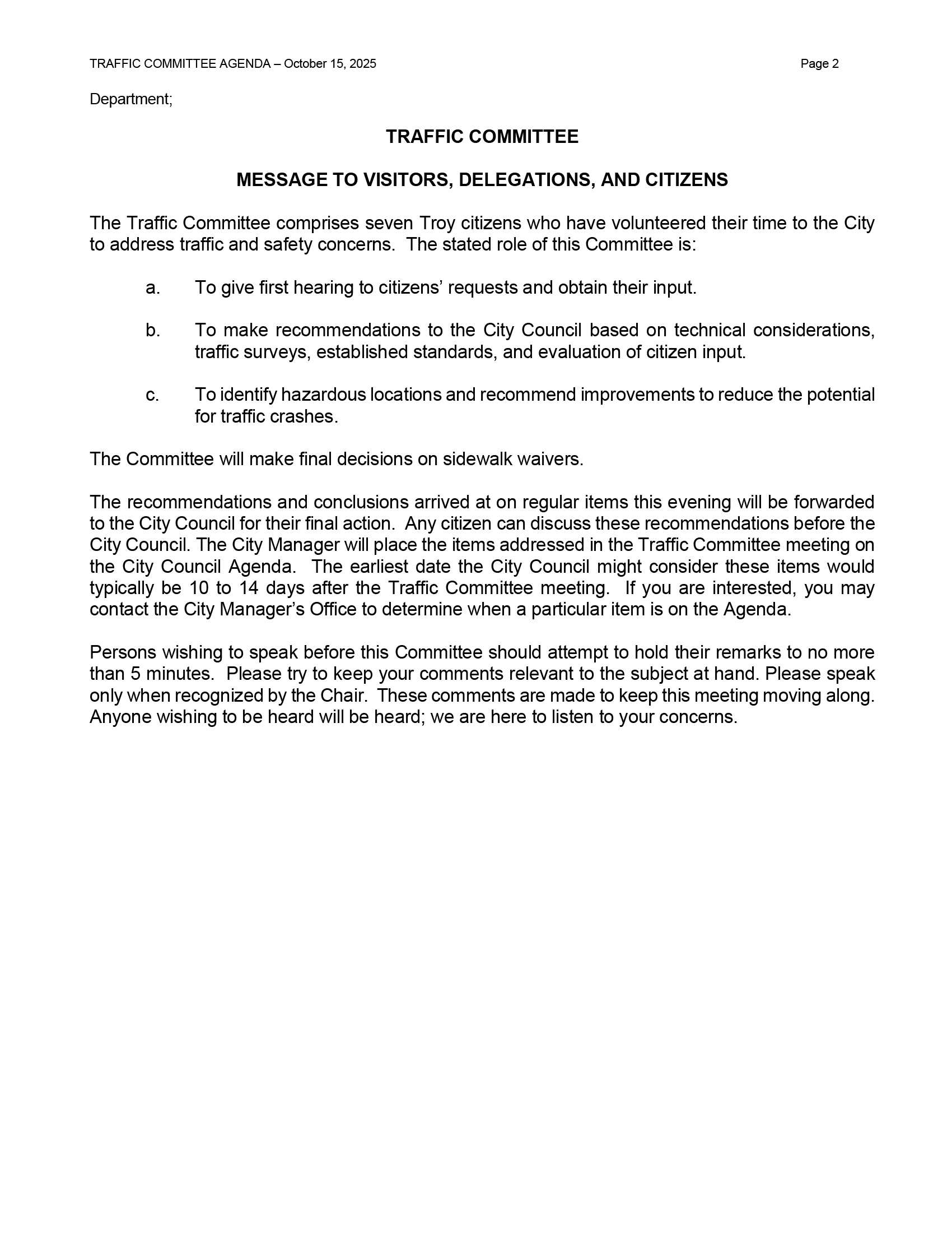2025-10-15 Traffic Committee Regular Agenda