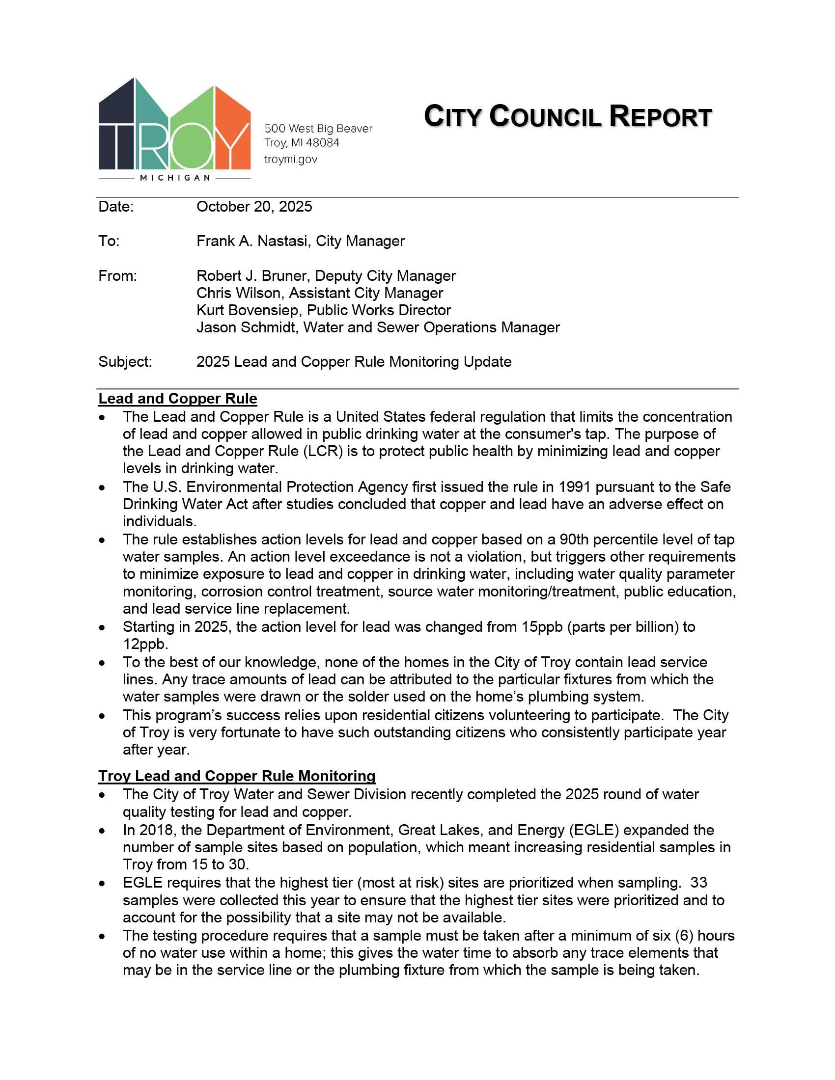 2025-10-20 City Council Regular Agenda Item O-02C 2025 Lead And Copper Rule Monitoring Update