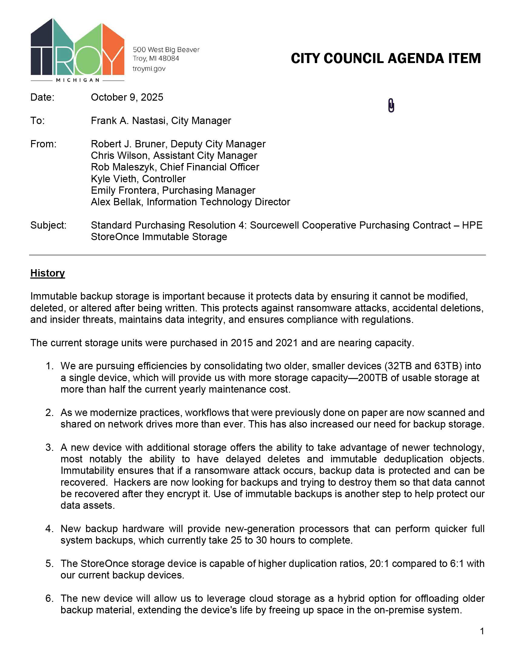 2025-10-20 City Council Regular Agenda Item J-04C Spr4 Sourcewell Cooperative Purchasing Contract – Hpe Storeonce Immutable Storage