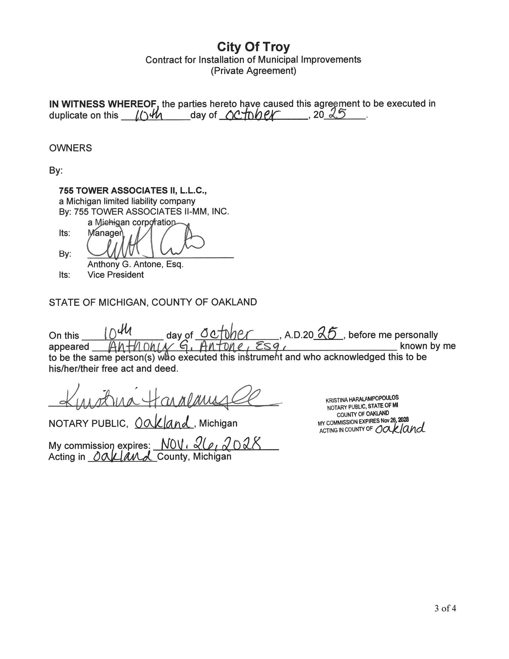 2025-10-20 City Council Regular Agenda Item J-07 Private Agreement - Contract For Installation Of Muncipal Improvements - Bose Hub Office & Engineering Building - Project No 25.914.3