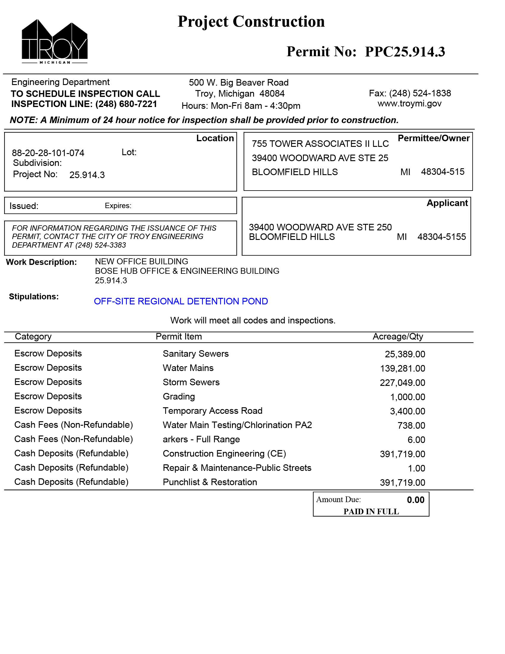 2025-10-20 City Council Regular Agenda Item J-07 Private Agreement - Contract For Installation Of Muncipal Improvements - Bose Hub Office & Engineering Building - Project No 25.914.3