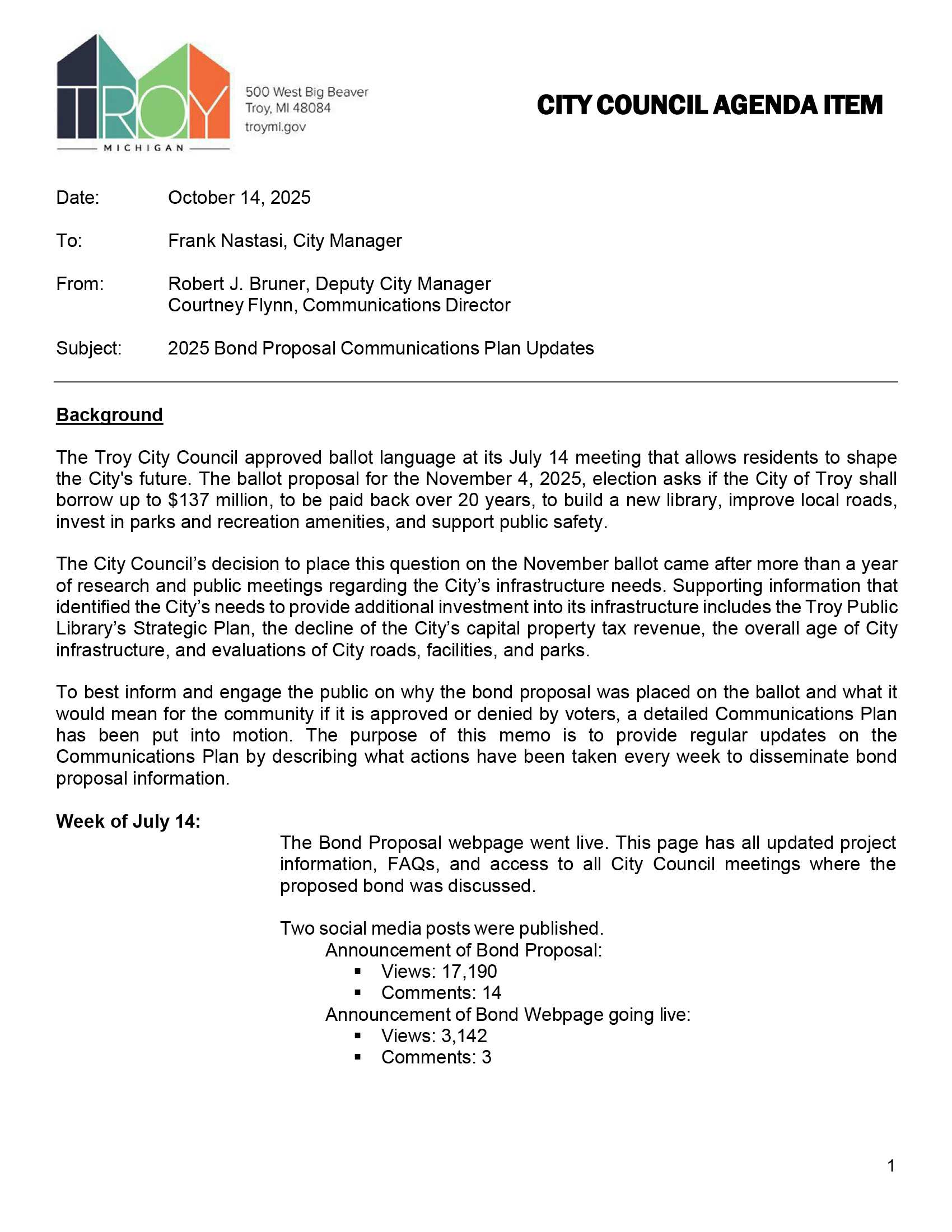 2025-10-20 City Council Regular Agenda Item O-02A 2025 Bond Proposal Communications Plan Updates