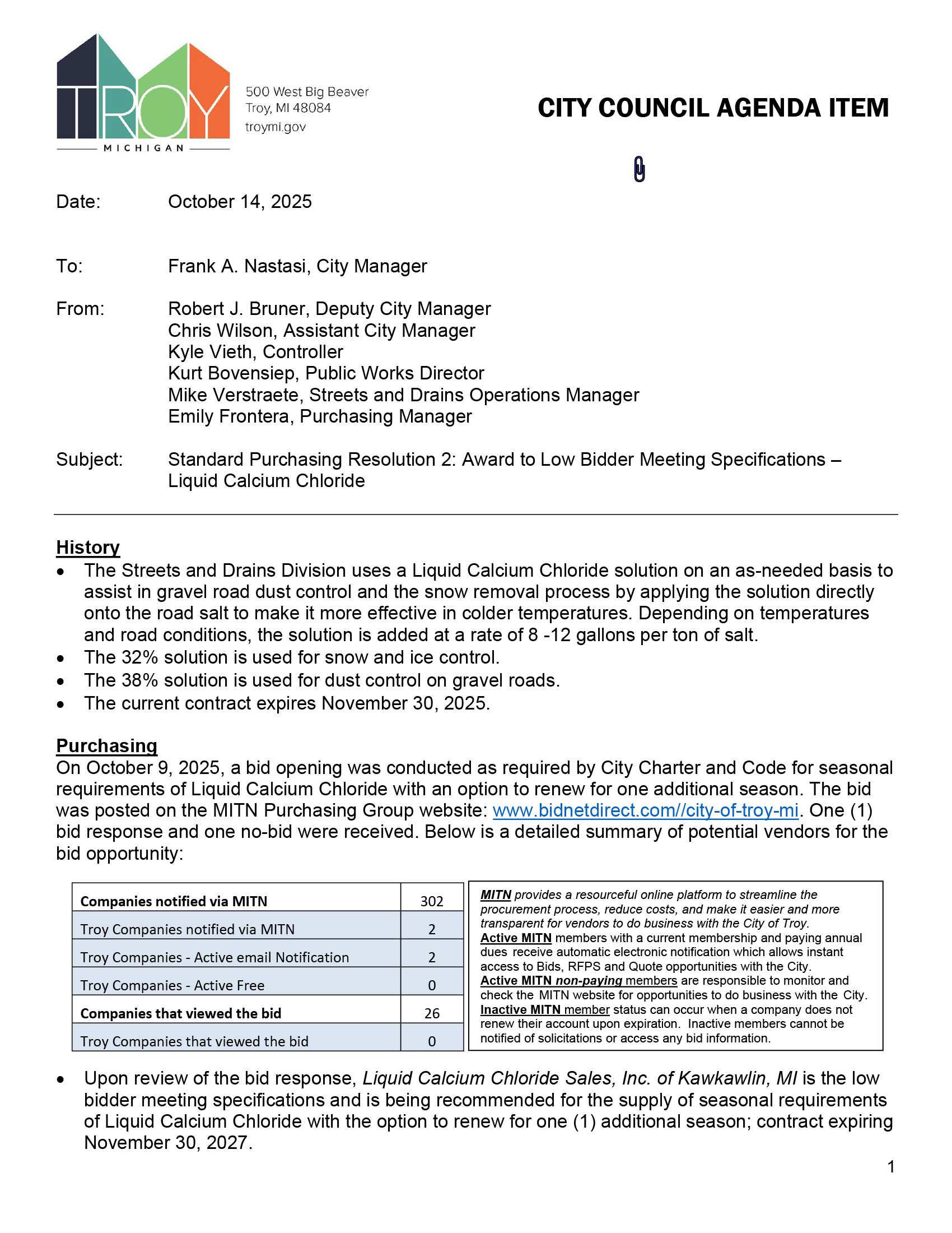 2025-10-20 City Council Regular Agenda Item J-04A Spr2 Award To Low Bidder Meeting Specifications - Liquid Calcium Chloride