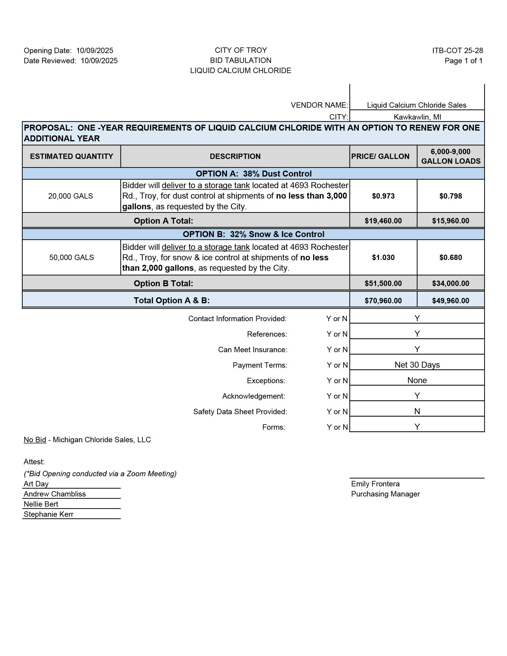2025-10-20 City Council Regular Agenda Item J-04A Spr2 Award To Low Bidder Meeting Specifications - Liquid Calcium Chloride