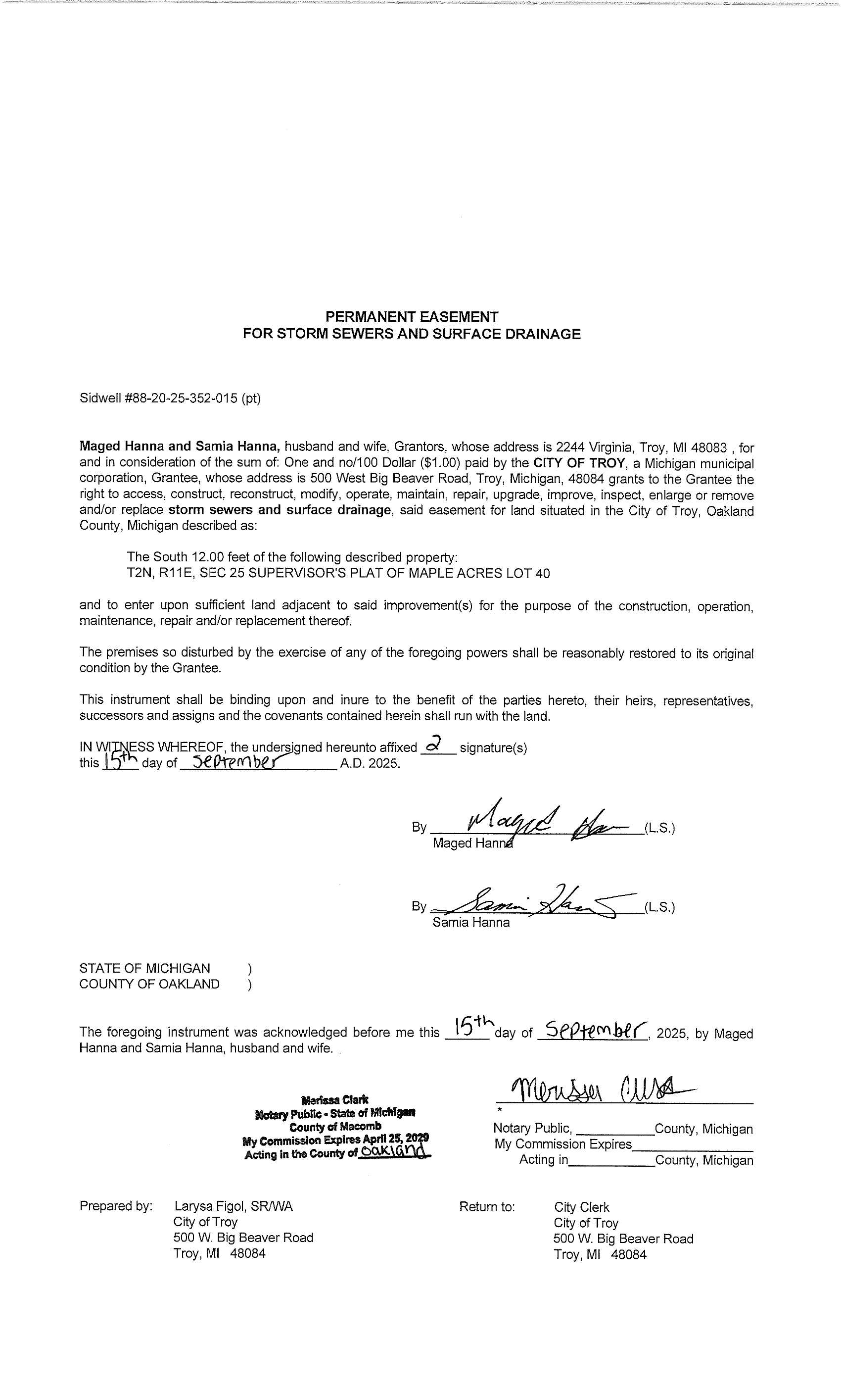 2025-10-20 City Council Regular Agenda Item J-06 Request For Acceptance A Permanent Easement, Sidwell #88-20-25-352-015