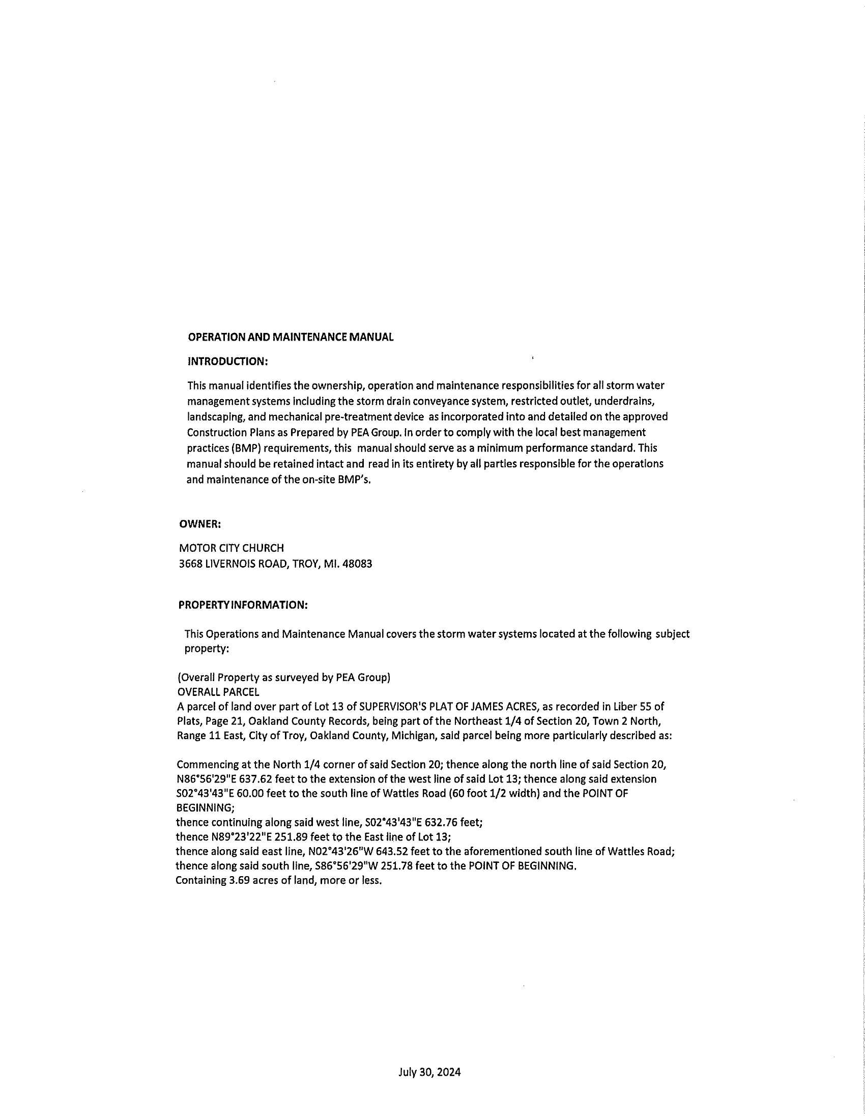 2025-10-20 City Council Regular Agenda Item J-09 Stormwater Management Operations And Maintenance Agreement, Motor City Church International, Sidwell #88-20-20-226-097