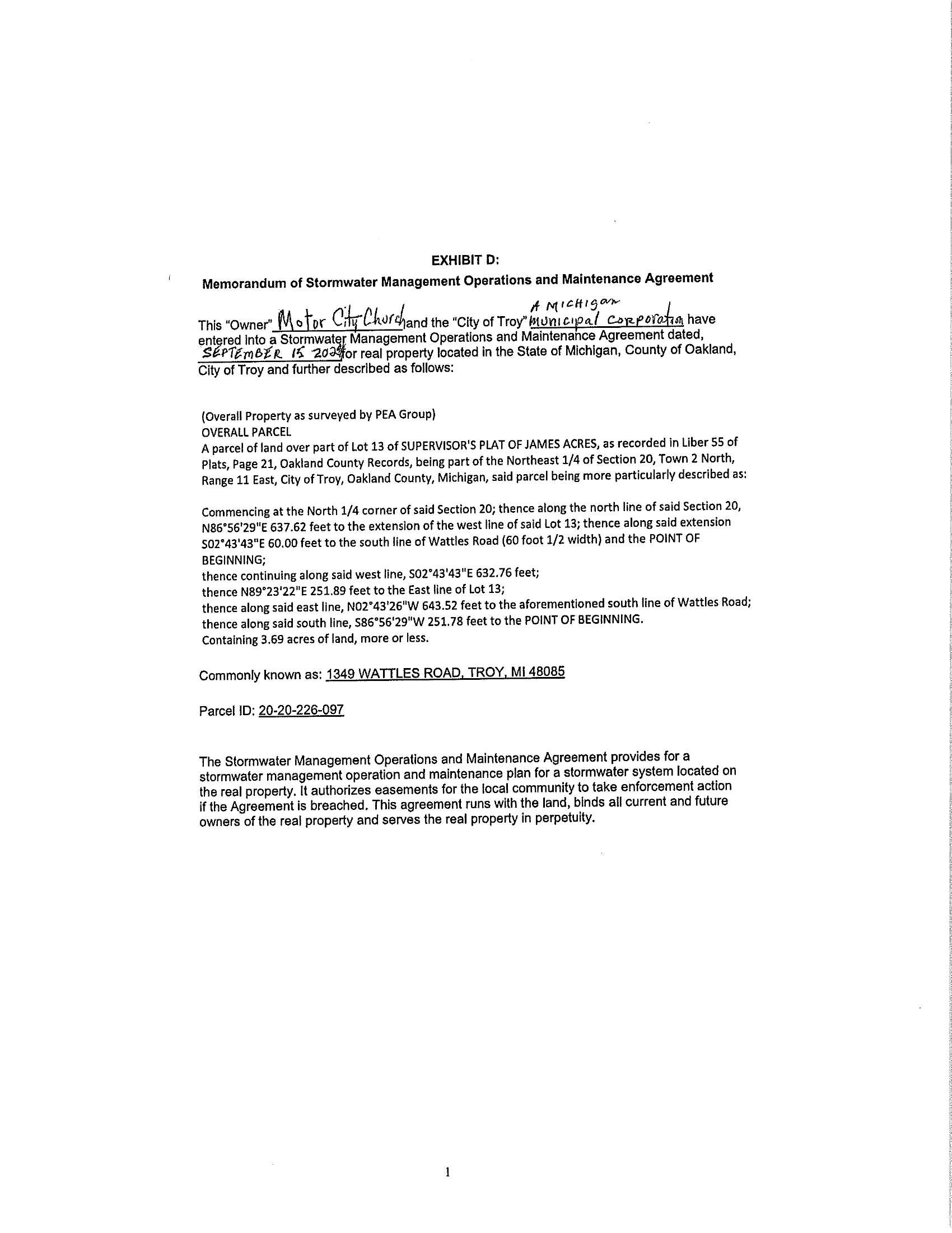 2025-10-20 City Council Regular Agenda Item J-09 Stormwater Management Operations And Maintenance Agreement, Motor City Church International, Sidwell #88-20-20-226-097