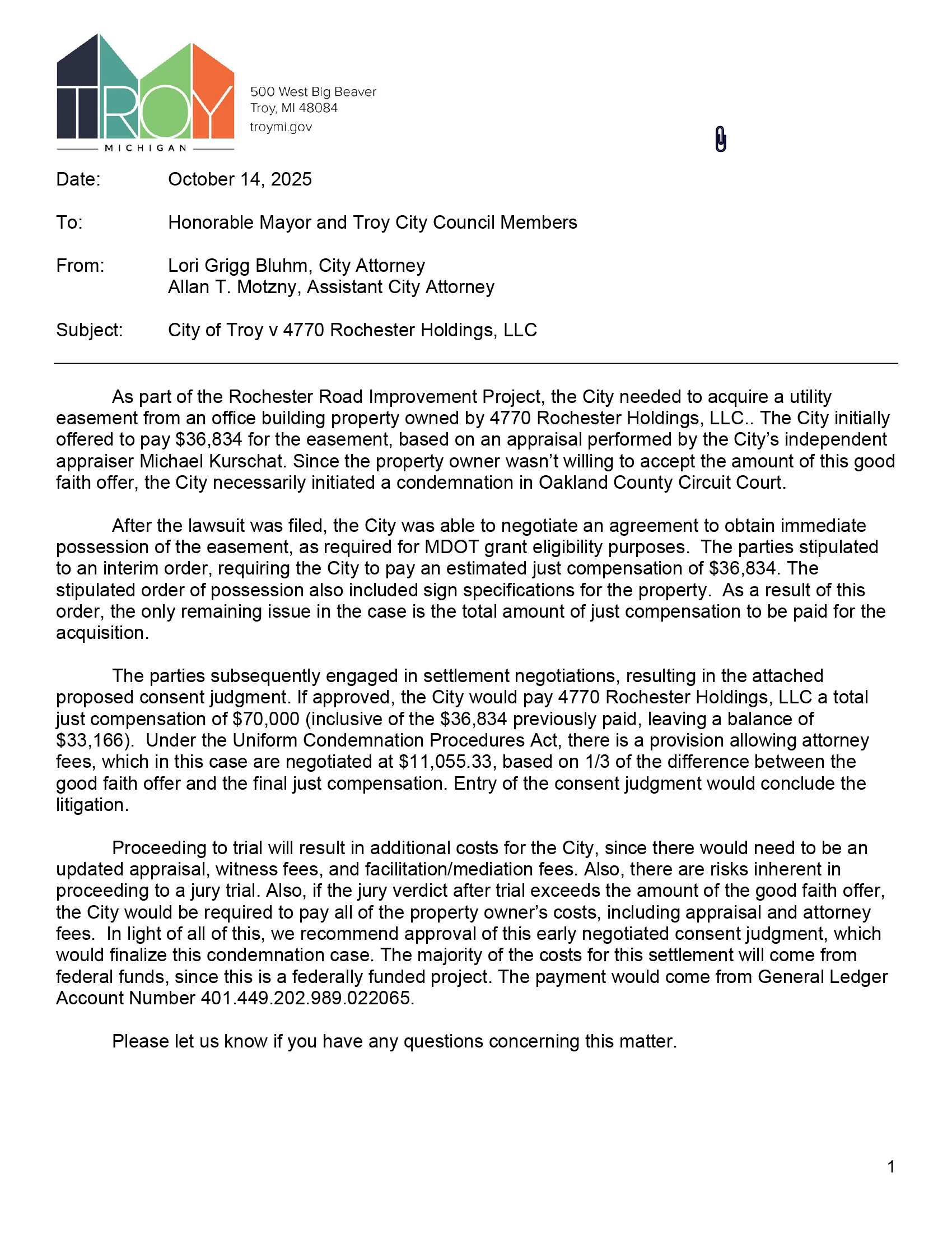 2025-10-20 City Council Regular Agenda Item J-10 City Of Troy V 4770 Rochester Holdings Llc