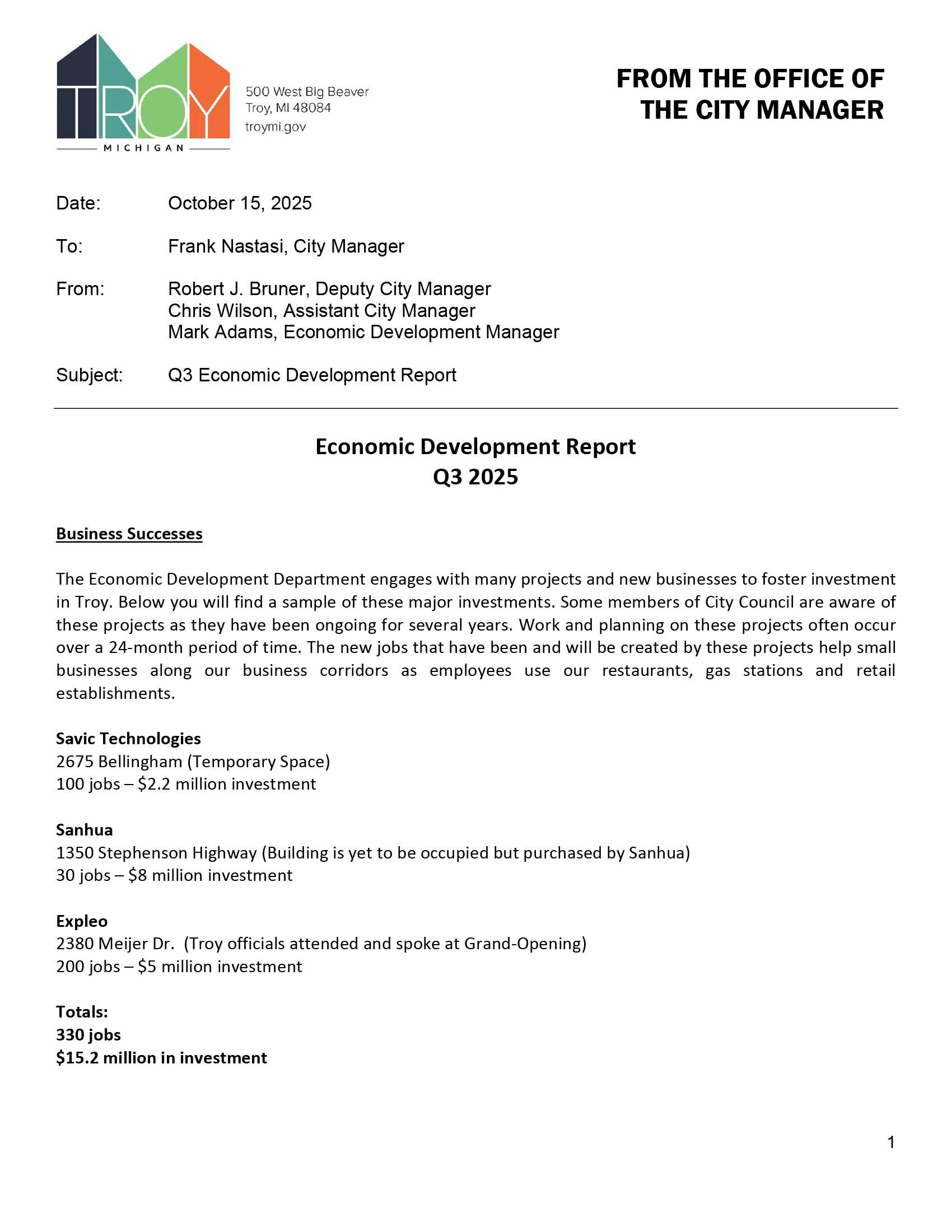 2025-10-20 City Council Regular Agenda Item O-02B Q3 Economic Development Report