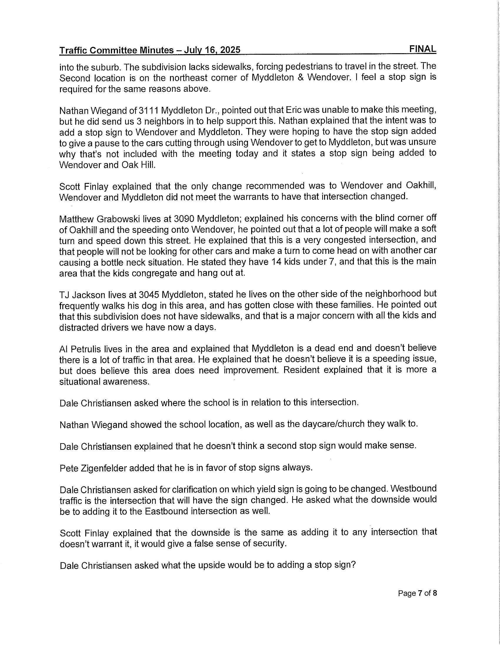 2025-10-20 City Council Regular Agenda Item O-01B Traffic Committee-Final - July 16, 2025