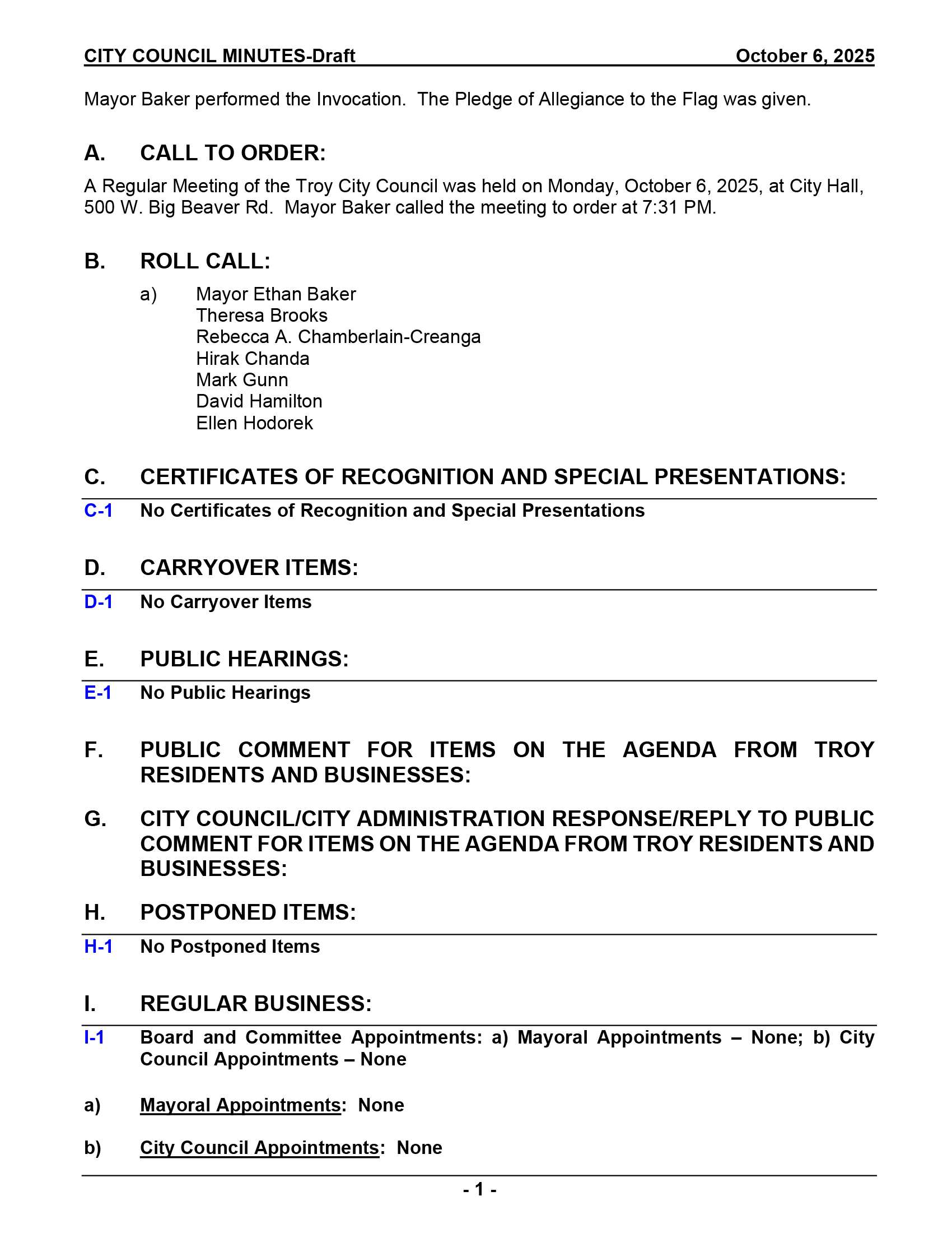 2025-10-20 City Council Regular Agenda Item J-02A City Council Minutes-Draft - October 6, 2025