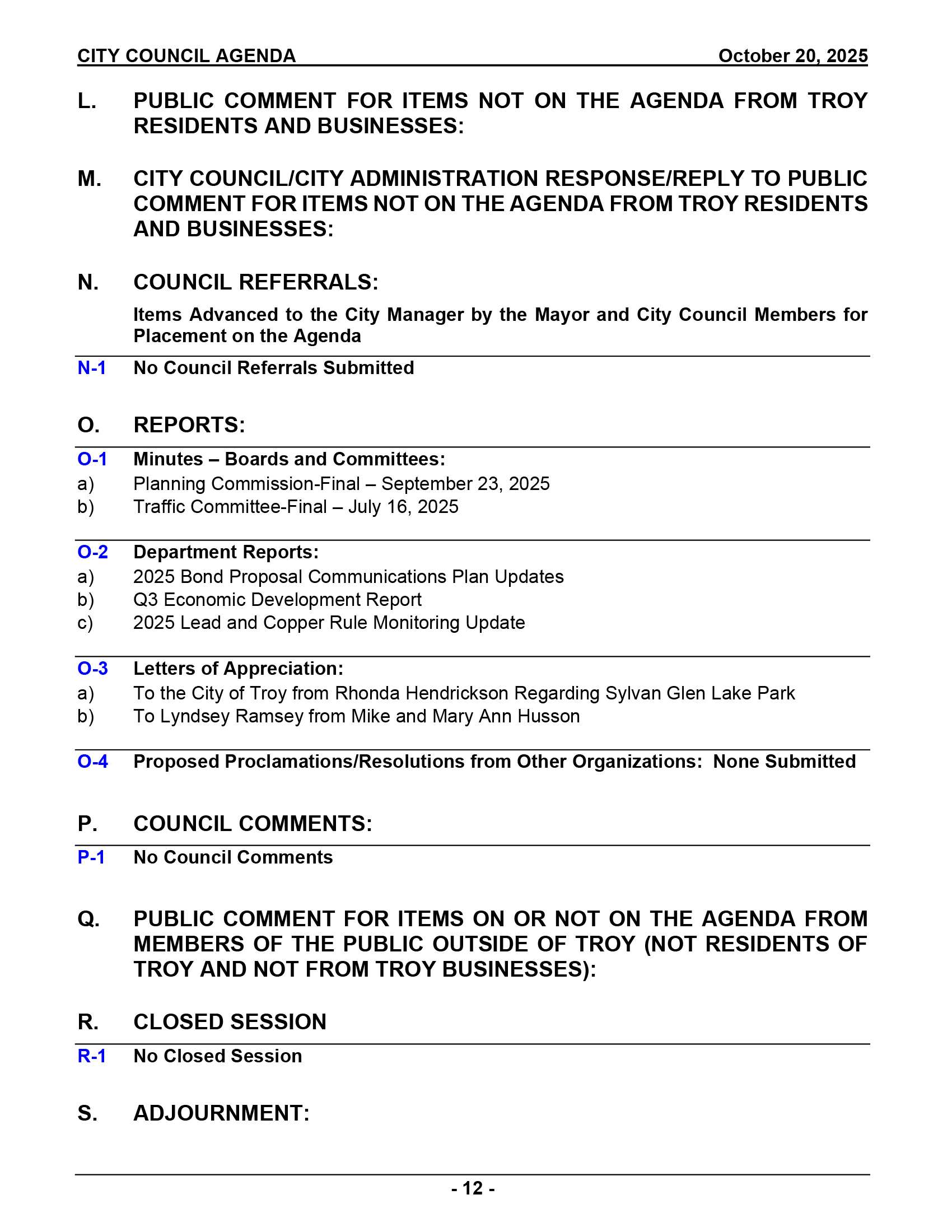 2025-10-20 City Council Regular Agenda