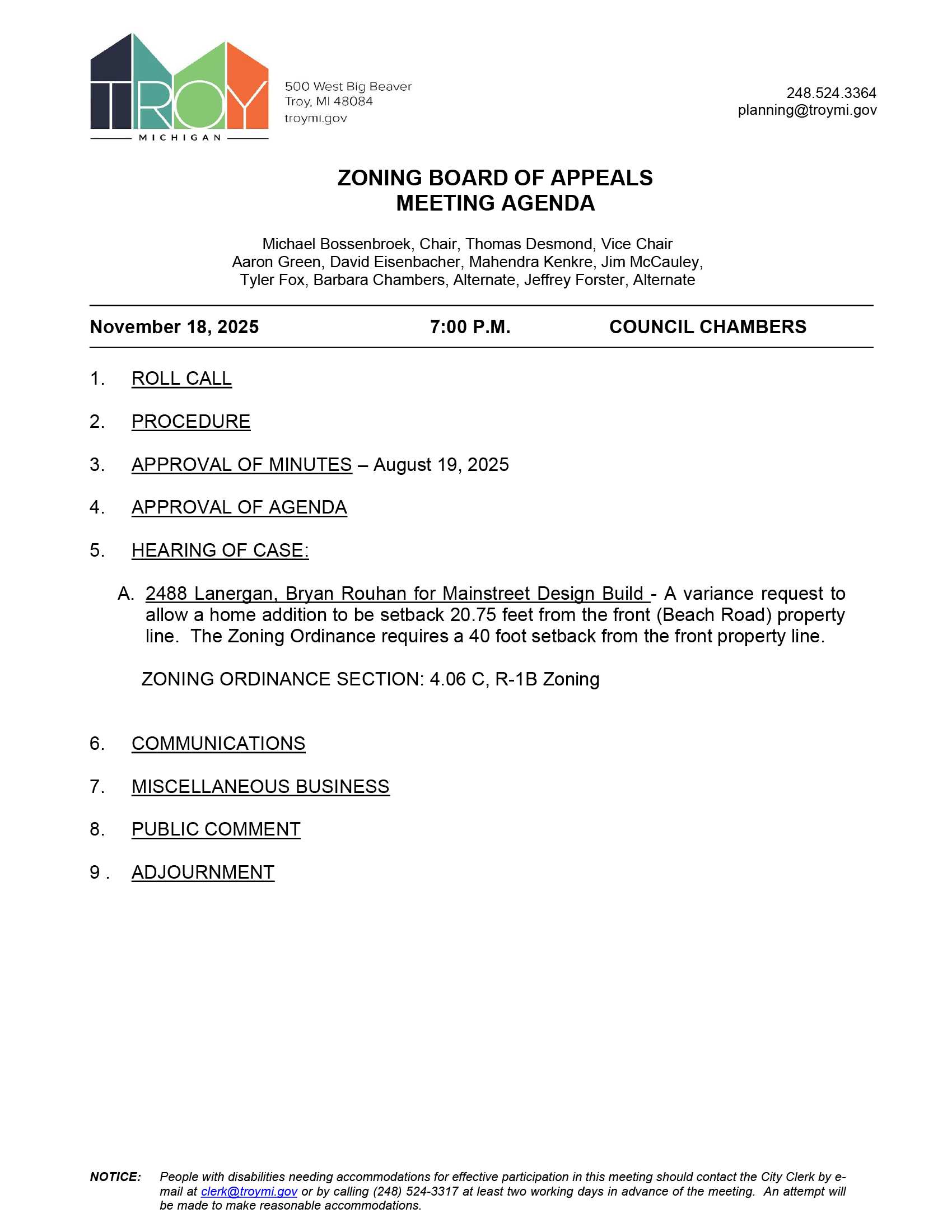 2025-11-18 Zoning Board Of Appeals (Zba) Regular Agenda